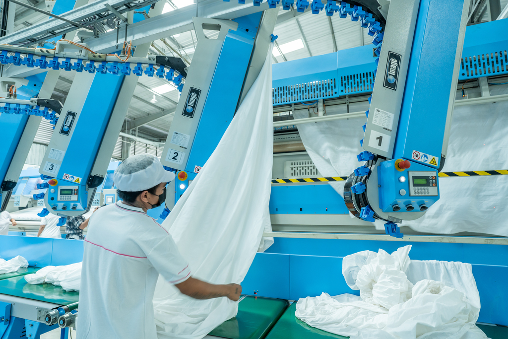 An automatic cloth folding machine utilizes sensors and folding mechanisms to swiftly and accurately fold various types of fabric, streamlining the folding process in commercial laundry operations.